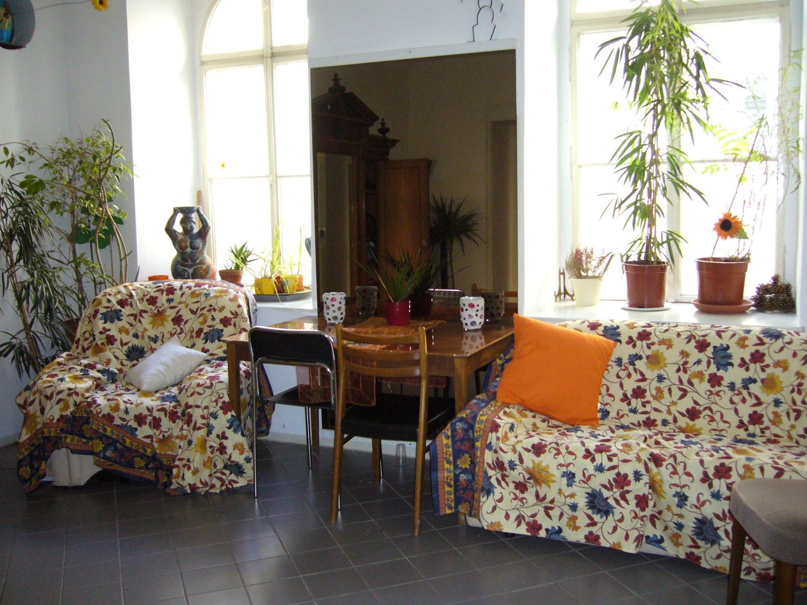 Fast quadratisch mit abdeckbaren 13 Meter Spiegelwand, Parkett, zum ruhigen Innenhof, Schallschutz Fenster 4,5 Meter hoch.